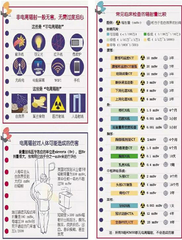 體檢車經(jīng)過幾十年的發(fā)展越來越先進(jìn),DR體檢車上面裝有車載DR設(shè)備??梢宰鲂夭縓光線檢查。一臺透視儀在體檢者胸前來回移動照射,醫(yī)生在另一頭的檢查室觀察。體檢車放射檢查的確有利有弊是一把雙刃劍,不應(yīng)檢查過度,也不必因此諱疾忌醫(yī)。因為通過檢查可以更加容易對患者的病情確診,對癥下藥。放射性體檢,對身體或多或少有點(diǎn)傷害,主要的危害是放射檢查對我們是通過來自X線產(chǎn)生的電離進(jìn)行輻射。但是在必須檢查的情況下研究表明利大于弊,因為接受一定量的輻射是正常的。體內(nèi)可以自我修復(fù)。一個大人接受一年100毫西弗的輻射對身體沒多大傷害的。但是不能過度放射檢查。當(dāng)有必要做的。當(dāng)數(shù)不能過于頻繁的情況或逐步改善無顯著變化,也沒有必要每天進(jìn)行審查,否則成為放療的變相。以下是常見臨床檢查的輻射量比較圖