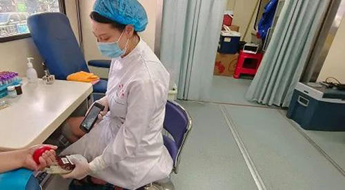 這個可以搖擺的稱是采血稱,把血袋放在這個搖擺盤上面,當(dāng)獻(xiàn)血的血液流到采血袋里面。托盤就會按照設(shè)計好的角度頻率搖擺,把血液跟抗凝劑充分的混合,使血液在血袋里面不凝固。血袋血液達(dá)到設(shè)定量,搖擺稱就會發(fā)音提醒。這樣醫(yī)護(hù)人員就可以及時處理,保障采血量的準(zhǔn)確度。血液的血袋及采血導(dǎo)管上貼上獻(xiàn)血條形碼,錄入血站管理中心的系統(tǒng)。這個條形碼,就是資料信息數(shù)據(jù),條形碼是唯一不會重復(fù)的??梢愿鶕?jù)這個碼進(jìn)行全過程的跟蹤。采血護(hù)士用來掃條形碼的儀器??梢話呙桎浫氆I(xiàn)血人員的各種信息,采血量、血袋編號、采血時間地點,采血容量,核對了獻(xiàn)血表等信息的一致性。就跟身份證一樣。作用是將信息實時上傳到血站的信息系統(tǒng),方便血液的數(shù)據(jù)共享核查。獻(xiàn)血前還需要扎針,進(jìn)行血液初篩。血液初篩是必不可少的環(huán)節(jié),可以初步檢測所獻(xiàn)的血液是否符合要求,這也是確保血液安全必不可少的步驟。篩查血型、血紅蛋白、轉(zhuǎn)氨酶等項目。