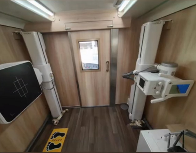 有時候胸口不舒服,腰不好怎么辦呢?車載DR可以實現(xiàn)就地檢查,不需要到醫(yī)院拍胸片進行DR超聲檢查。大家能在醫(yī)院完成的體檢項目,都可以實現(xiàn)。醫(yī)生通過外面的電腦,打開和控制設(shè)備。DR會根據(jù)檢查者的身高體型,自動判斷位置移動到檢查的區(qū)域。自動成像,并且在服務(wù)器里面記錄相應(yīng)的數(shù)據(jù)。效率也非常高,當天檢查就能當天出結(jié)果。可以滿足突發(fā)事件中傷病員的頸椎、胸椎、腰椎、四肢骨骼、胸部、骨盆、各個關(guān)節(jié)全身的數(shù)字化DR檢查需求。