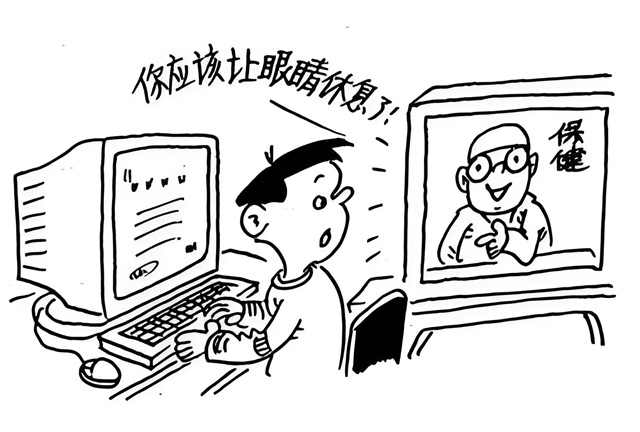 (5)不能長(zhǎng)時(shí)間盯著電腦顯示器,適當(dāng)?shù)男菹ⅲ?小時(shí)休息10分鐘左右,不要連續(xù)使用超過(guò)4個(gè)小時(shí)。休息時(shí)候甩甩手腕,走一下路,遠(yuǎn)眺一下遠(yuǎn)方。