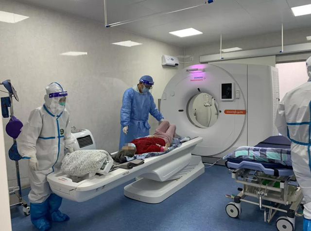 醫(yī)院發(fā)熱門診就診,長方體箱子中進行CT胸部檢查。這個就是方艙CT,在疫情防控期間發(fā)揮了重要作用。嚴格的場地布局,設備組裝,質(zhì)量控制檢測,放射防護檢測,就可以馬上投入使用。方艙CT獨立在醫(yī)院大樓外面,主要是配套發(fā)熱門診使用。如果有疑似病人就通過專用通道進入方艙CT檢查。雙向單通道沒有與外界聯(lián)系。CT檢查準時高效,確保了檢查的強隔離沒有任何接觸,可以保障檢測人員跟病人沒有感染的風險。采用閉環(huán)管理,檢查人員的口罩、隔離衣服、手套都是全方位的消毒。CT掃描檢查好后的圖像質(zhì)量。上傳到數(shù)據(jù)系統(tǒng)然后查看圖像。各個科室的醫(yī)生也可以通過網(wǎng)絡看片。方便高效快捷。方艙CT的啟用為患者提供精準的影像診斷,為醫(yī)生提供快捷的影像報告、準確的參考依據(jù),疫情防控提供有力的數(shù)據(jù)支持。