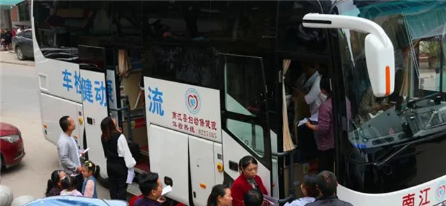 婦幼保健院的體檢車醫(yī)護人員上山下鄉(xiāng),下到社區(qū)。為人民群眾開展國家免費婚前醫(yī)學(xué)檢查與孕前優(yōu)生健康檢查。原來是群眾自己到醫(yī)院進行免費檢查的。為了疫情防控需要,減少人員到醫(yī)院聚集避免交叉感染。體檢車上門服務(wù),為提高婚檢率、孕檢率開辟了新路子。體檢車很受歡迎,群眾絡(luò)繹不絕地前來,自愿接受婚前醫(yī)學(xué)檢查、孕前優(yōu)生健康檢查。