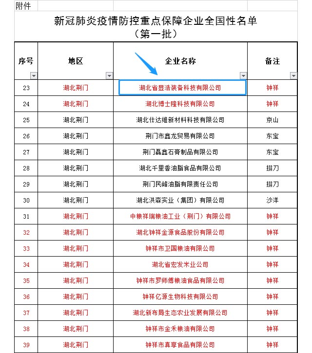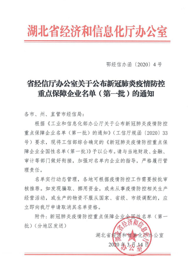 湖北顯浩被省經(jīng)信廳列為全國新冠肺炎疫情防控重點(diǎn)保障企業(yè)